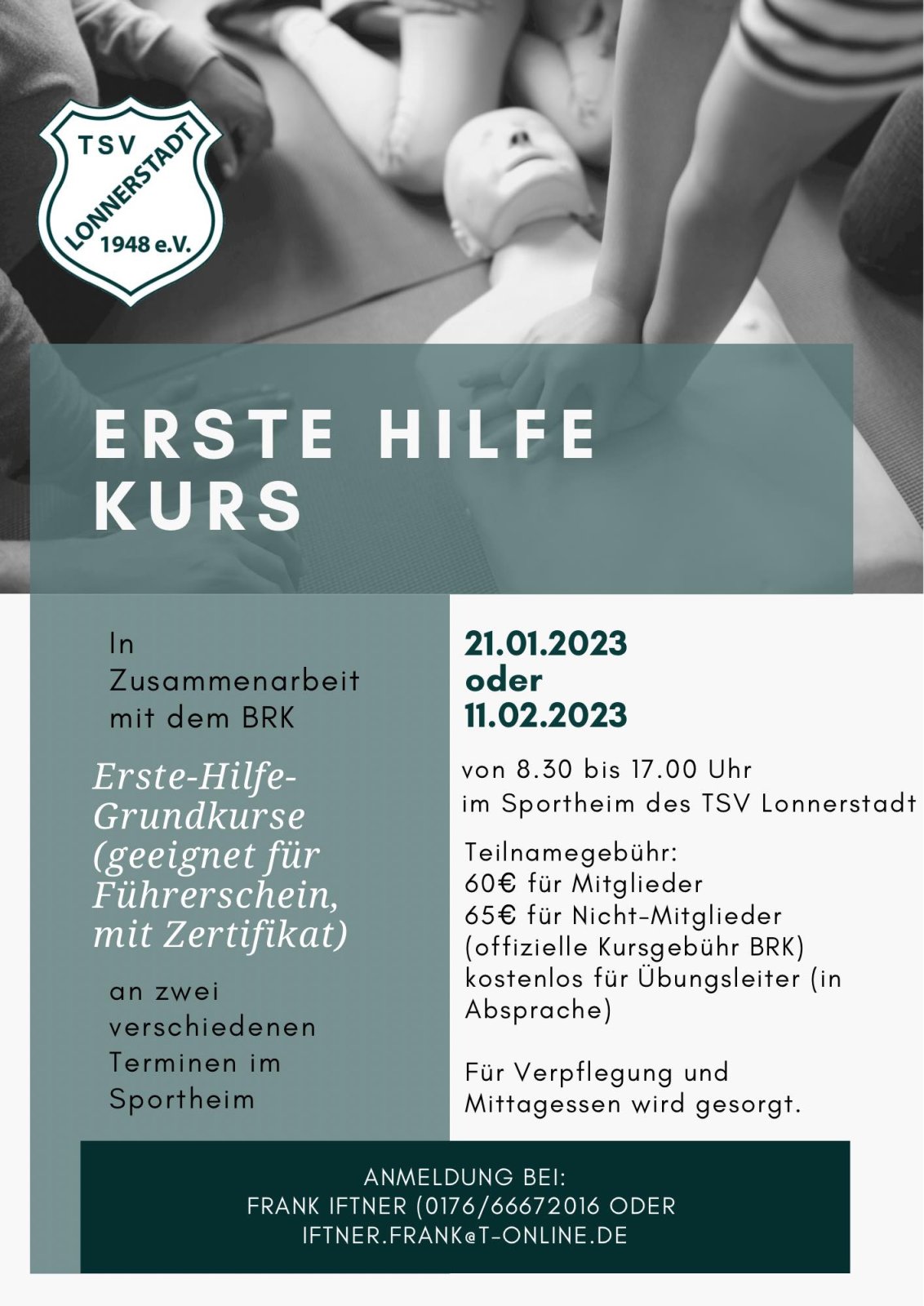 In Zusammenarbeit mit dem BRK, geeignet für Führerschein, mit Zertifikat.