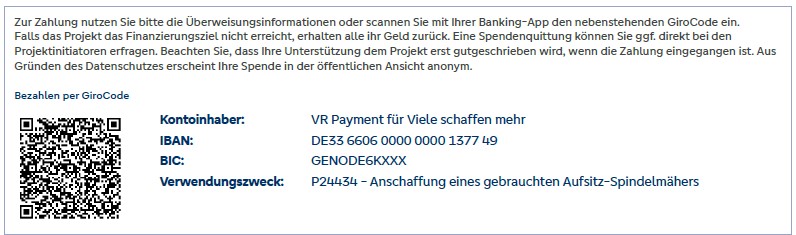 Crowdfunding-Projekt bis 2. Mai 2024: Anschaffung eines gebrauchten Aufsitz-Spindelmähers
